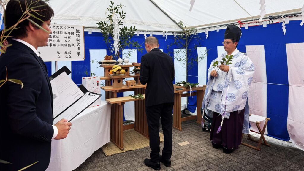 地鎮祭は、工事の安全祈願のために土地の神様を祀る儀式であり、施主・工事関係者・神主が参加します。